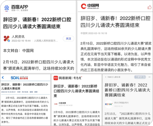 2月15日,2022四川少兒誦讀大賽