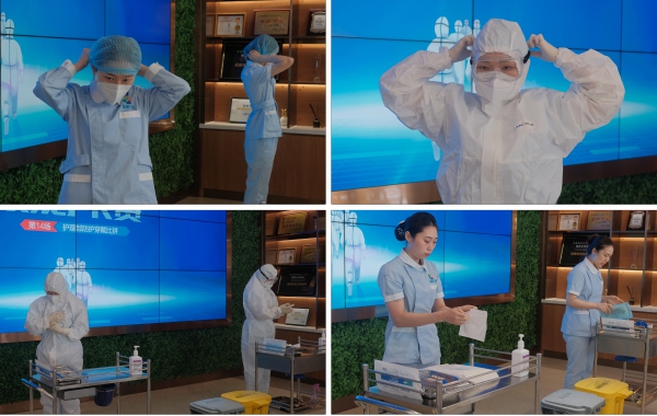 對于他們來說防護服的穿脫在特定的時間內已經成為日常。在賽中各位選手條不紊地完成了穿脫連體防護服、佩戴口罩、護目鏡、手套、洗手和手消毒等操作環(huán)節(jié)。