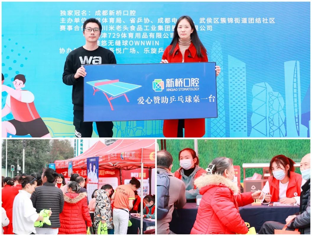 助力四川省“百城千鄉(xiāng)萬村·社區(qū)”乒乓球大賽,昨日(2023年2月26日)下午,口福工程國球秀第十一站走進成都團結社區(qū)!新橋口腔攜手成都電視臺,與數(shù)百位團結社區(qū)居民一起,以國球PK為主題,共享運動快樂!