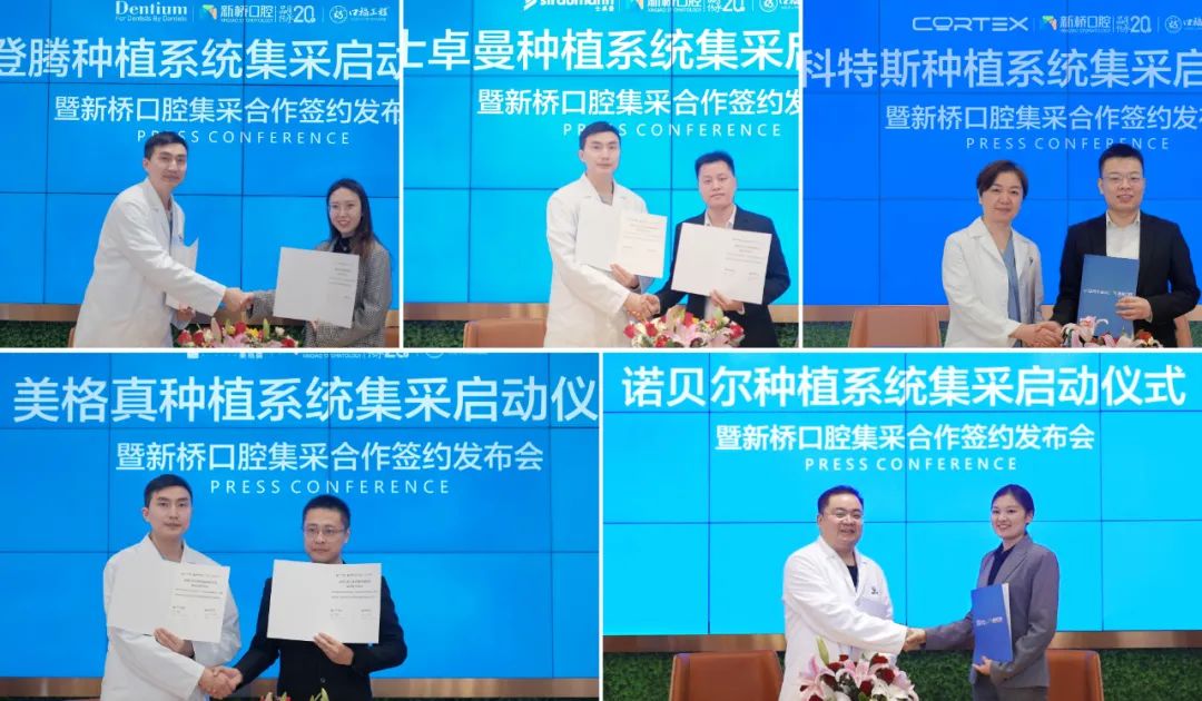 4月20日,四川省開始執(zhí)行種植牙集采政策,對“集采名單內(nèi)的種植體和牙冠”按政府統(tǒng)一的采購價零差價收費。登騰種植體、士卓曼種植體、科特斯種植體、美格真種植體、諾貝爾種植體先后在新橋口腔舉行了集采啟動儀式。