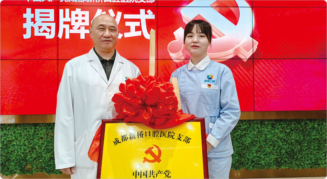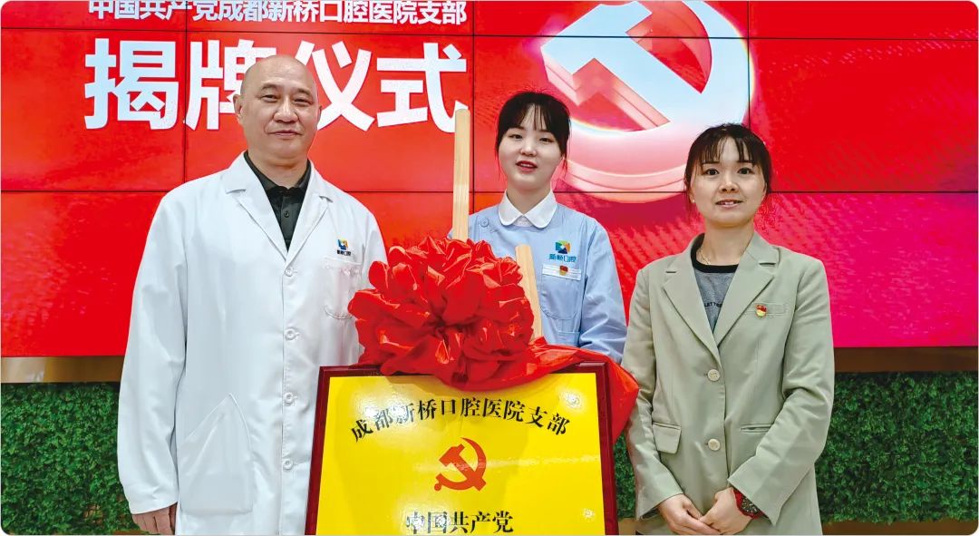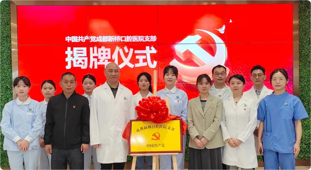 為進(jìn)一步加強(qiáng)新橋口腔黨組織建設(shè),用高質(zhì)量黨建引領(lǐng)企業(yè)高質(zhì)量發(fā)展,在成都市武侯區(qū)漿洗街道蜀漢街社區(qū)和各級(jí)黨委的關(guān)懷、指導(dǎo)下,新橋口腔于今日上午正式舉行黨支部成立揭牌儀式。成都市武侯區(qū)漿洗街道蜀漢街社區(qū)黨委副書記高桂華、華西種植專家/新橋口腔成都玉雙院區(qū)業(yè)務(wù)院長劉果生、新橋口腔第一屆黨支部書記蔣越等相關(guān)負(fù)責(zé)人出席本次儀式。