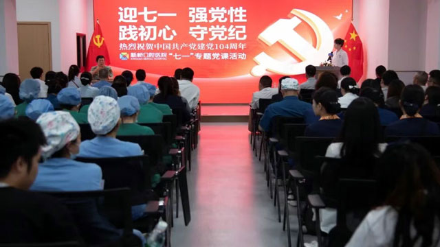 為慶祝中國(guó)共產(chǎn)黨成立104周年,深入學(xué)習(xí)貫徹黨的二十大精神,進(jìn)一步強(qiáng)化黨員干部黨性修養(yǎng)、厚植員工愛(ài)國(guó)愛(ài)黨情懷,6月10日,新橋口腔“迎七一 強(qiáng)黨性 踐初心 守黨紀(jì)”專題黨課活動(dòng)在新橋口腔成都總院(成都人南新橋口腔醫(yī)院)成功舉辦。
