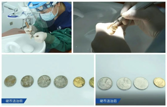 8月13日上午,考驗(yàn)參賽選手實(shí)操的首戰(zhàn)——“舊幣清洗”環(huán)節(jié)拉開帷幕,選手們需使用潔牙器械對(duì)布滿頑固污漬的舊硬幣進(jìn)行深度清潔。此環(huán)節(jié)不僅考驗(yàn)器械操控的穩(wěn)定性,更模擬了在臨床中對(duì)牙結(jié)石、色素沉積的精細(xì)處理能力。