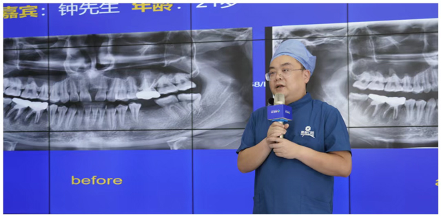 與此同時,兩位專業(yè)解說也通過實時畫面,為觀眾講解了手術(shù)中的關(guān)鍵操作與技術(shù)要點——從面部消毒到備洞精度,再到植體植入,每一個細(xì)節(jié)都體現(xiàn)著規(guī)范化醫(yī)療的質(zhì)量把控,極大提升了觀眾對種植牙手術(shù)的認(rèn)知水平和辨別能力。
