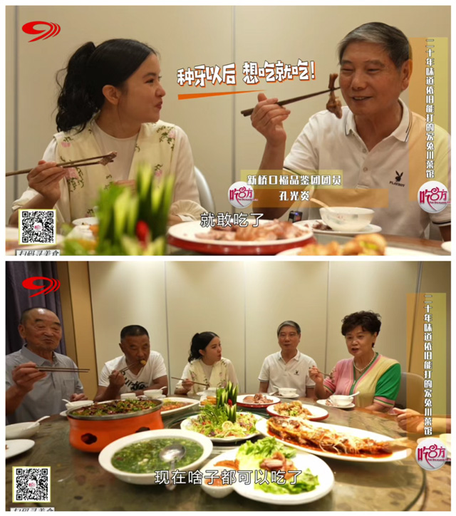 口福挑戰(zhàn)第一關(guān),節(jié)目組便呈上了鎮(zhèn)店之寶——青椒兔,先煸后炸的烹飪方式將花椒的麻與青椒的香完美融合,從而營造出麻辣干香、外酥里嫩的風(fēng)味與口感。只見口福品鑒團(tuán)團(tuán)員們嚼得輕松自在,絲毫不見曾飽受缺牙困擾的窘態(tài)。在新橋口腔種了全口牙的蔣叔叔連連贊道:“這個味道好吃!”而其好友龐叔叔曾經(jīng)面對美食只能望而卻步,如今種好牙也能在細(xì)細(xì)品味后點評一番:“成都的天氣很適合吃麻辣,巴適!”
