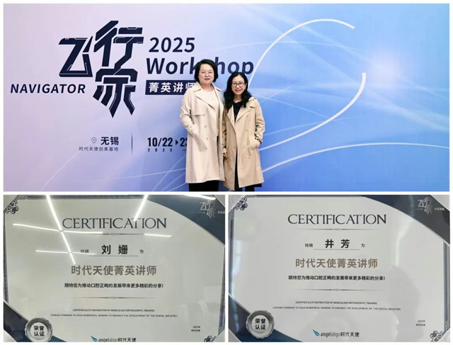 10月22日至23日,由隱形正畸民族品牌時(shí)代天使主辦的“2025飛行家菁英講師Workshop”在江蘇無(wú)錫舉行。新橋口腔業(yè)務(wù)院長(zhǎng)、正畸專科首席醫(yī)生劉姍與正畸專家井芳受邀參會(huì),并雙雙獲評(píng)為“時(shí)代天使菁英講師”。