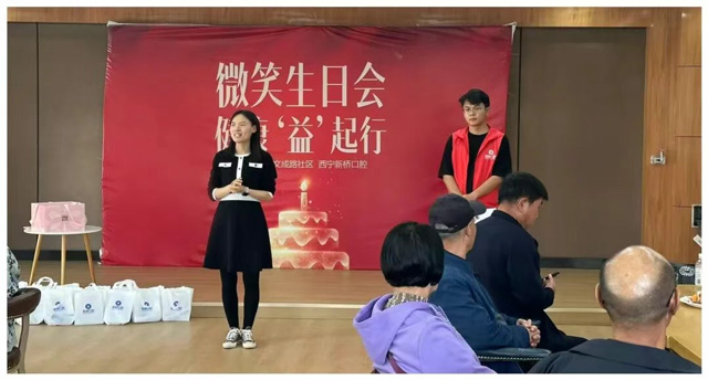 金秋送爽,丹桂飄香。在重陽(yáng)佳節(jié)即將到來(lái)之際,為弘揚(yáng)中華民族尊老、敬老、愛(ài)老的傳統(tǒng)美德,新橋口腔西寧院區(qū)攜手通海路街道文成路社區(qū),在社區(qū)活動(dòng)中心共同舉辦了一場(chǎng)以“微笑生日會(huì),健康益起行”為主題的敬老慶生活動(dòng),為本月過(guò)生日的醫(yī)院老患者及社區(qū)老年居民送上了一份節(jié)日的溫暖與誠(chéng)摯的祝福。