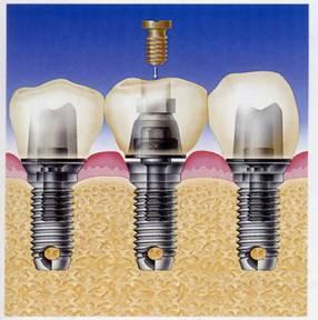 在種植體種入牙槽骨3-6個月后,依靠體內(nèi)骨細胞的生長,使種植體與牙槽骨牢固生長結(jié)合在一起,然后再在種植體上進行烤瓷牙修復(fù),從而達到牙齒修復(fù)的目的。